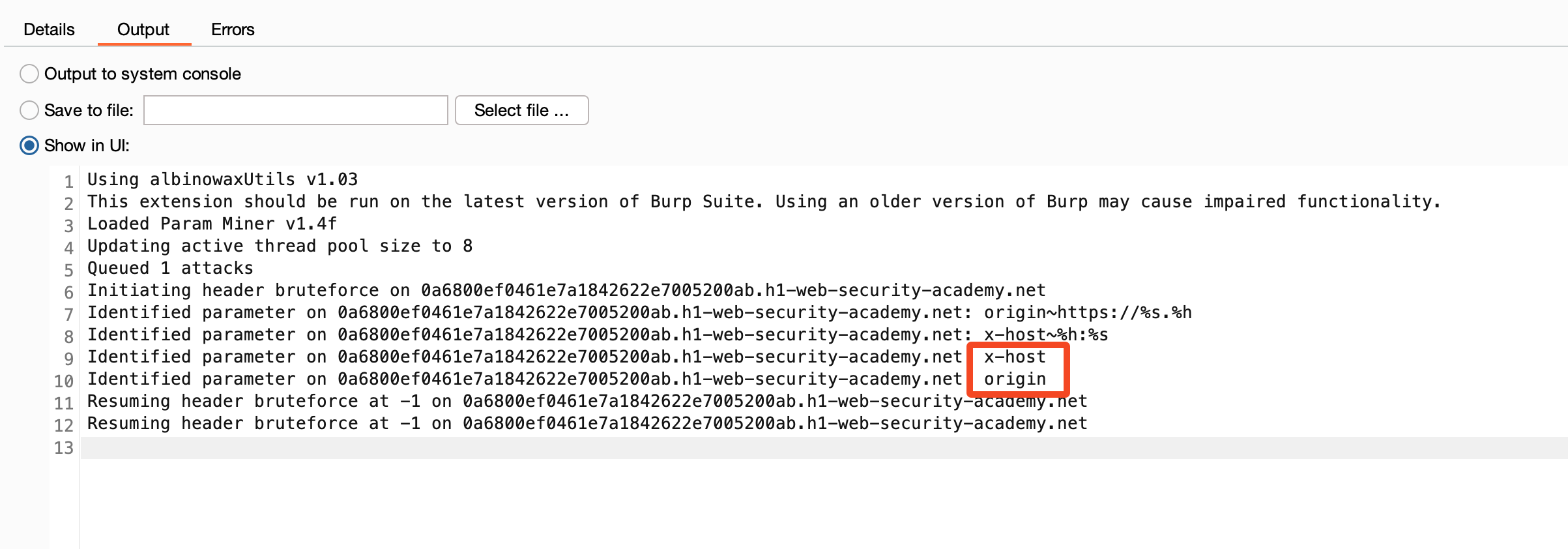 Quickly, the tool detects that the Origin and X-Host headers cause the server's response to vary.